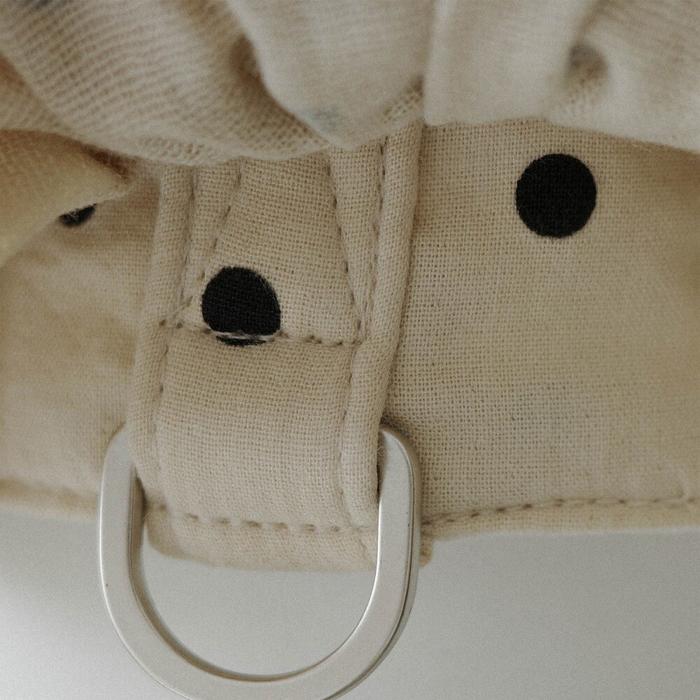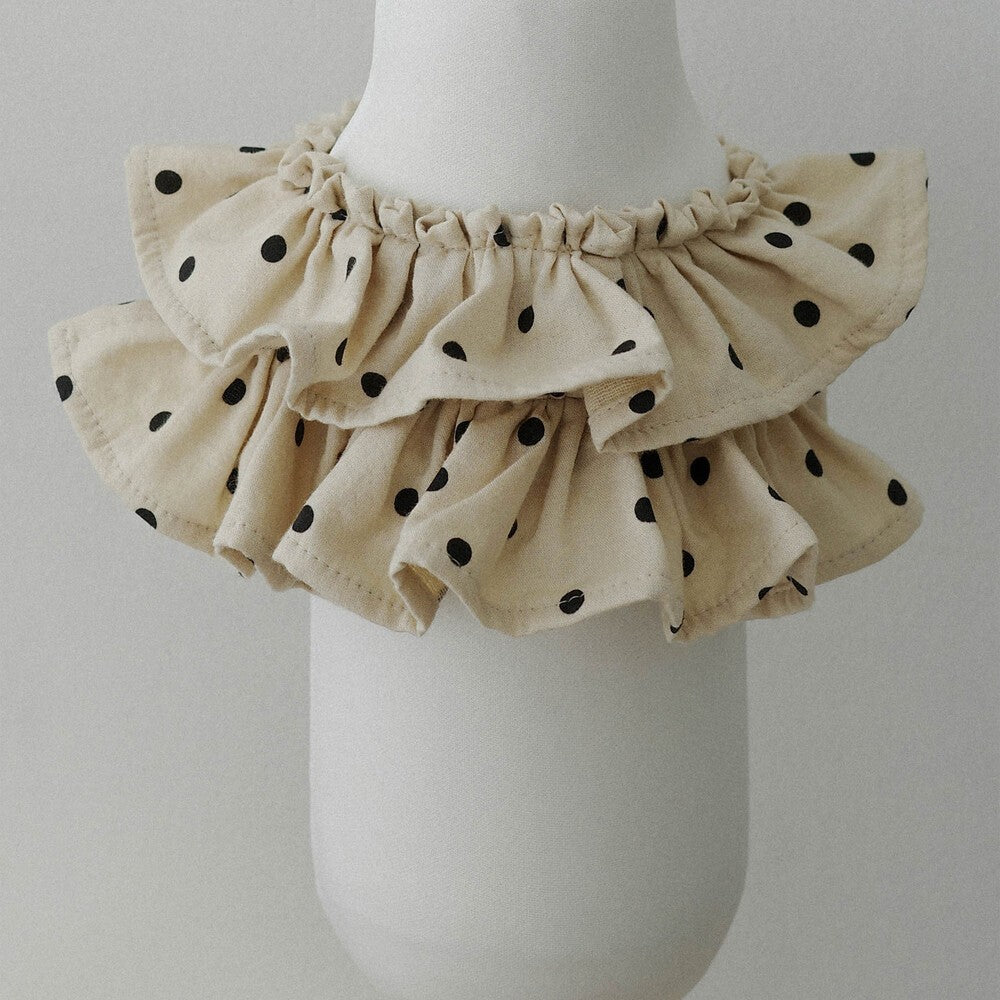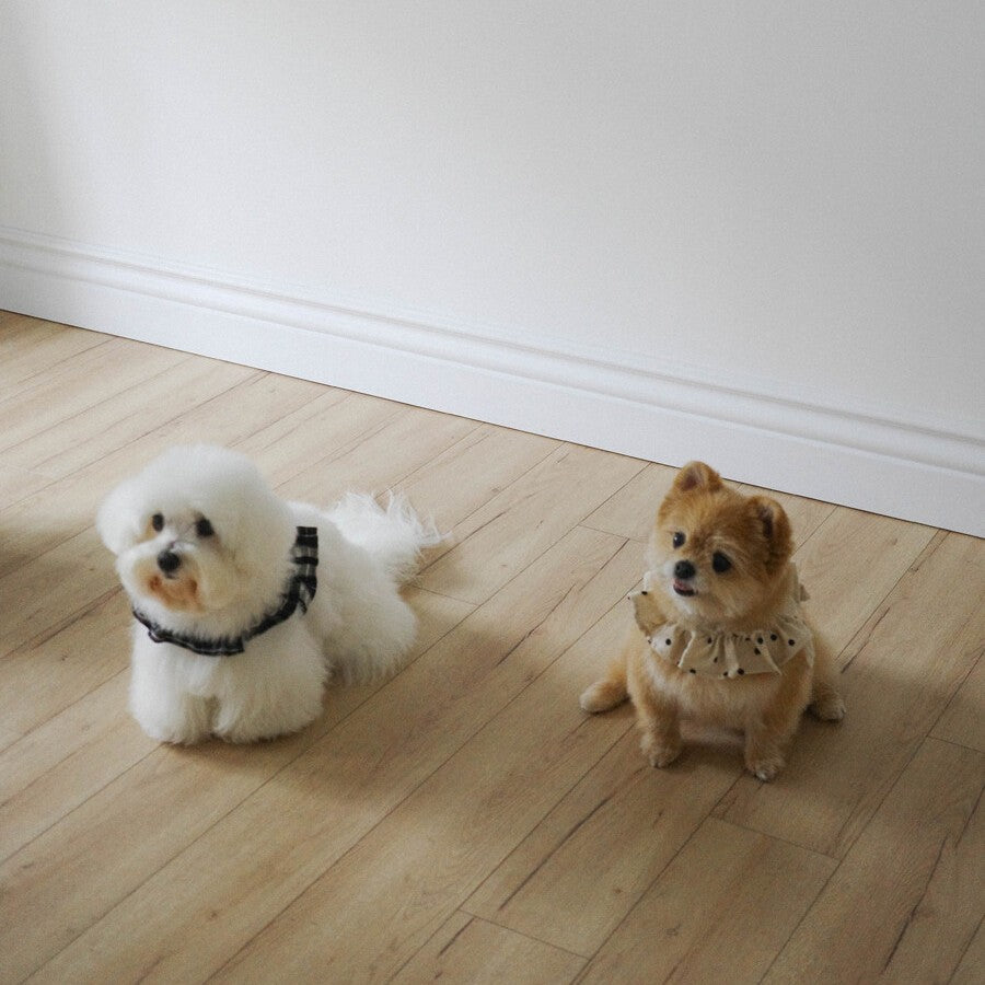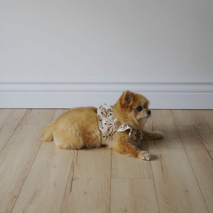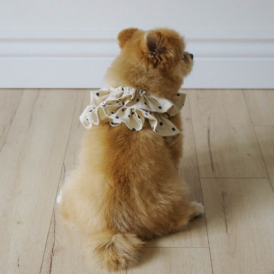 ケープをまとったような2段フリルのディテールが映える、愛らしいシルエット。お洋服を着るのが苦手、または手軽におしゃれを楽しみたい飼い主さんにとって、ケープハーネスはついつい手に取ってしまう、一つは持っておきたいハーネス。