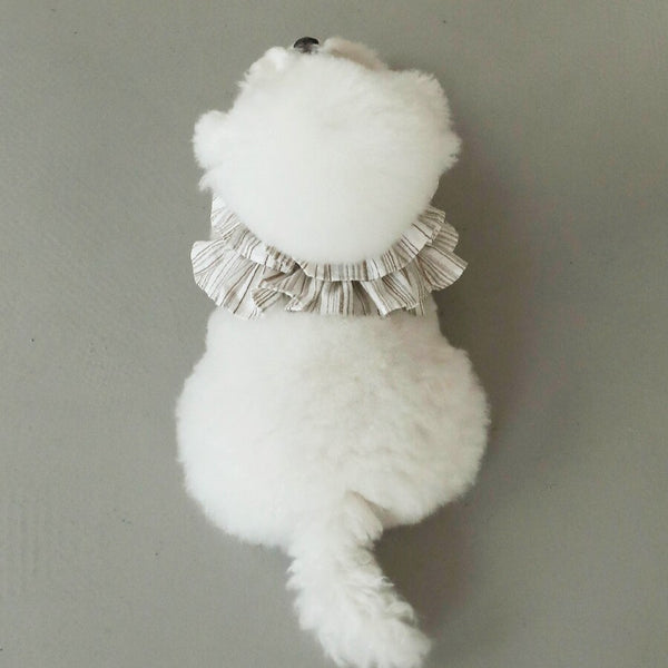 ケープをまとったような2段フリルのディテールが映える、愛らしいシルエット。お洋服を着るのが苦手、または手軽におしゃれを楽しみたい飼い主さんにとって、ケープハーネスはついつい手に取ってしまう、一つは持っておきたいハーネス。