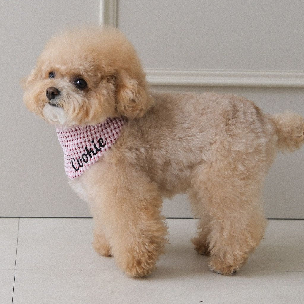 大切な愛犬のお名前をスカーフに刺繍して、特別な一枚を作ってみませんか?