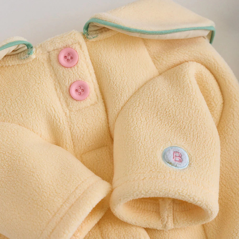 愛らしいカラー配色が目を惹くフリースジャンパー。