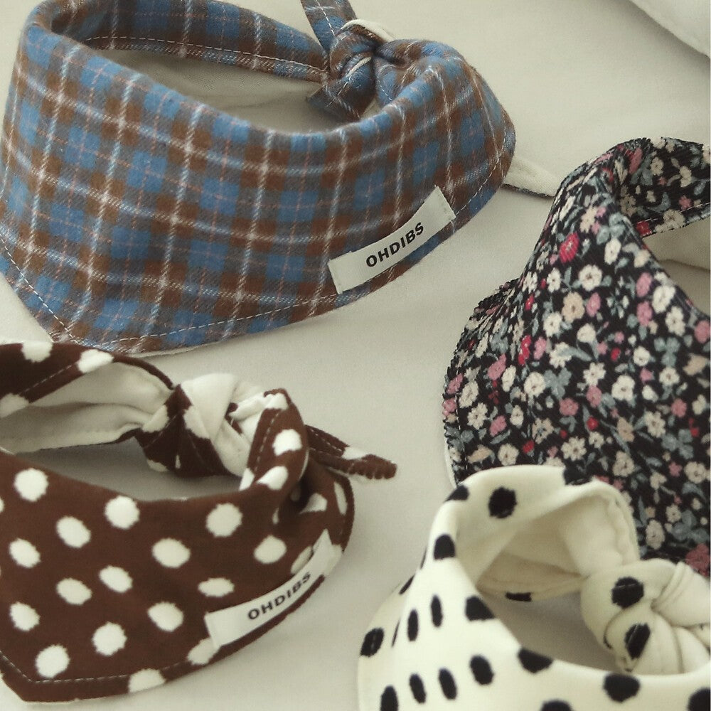 ドットアイボリー、ドットブラウン、チェック、フラワーの4色展開。