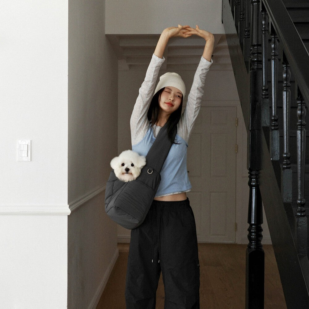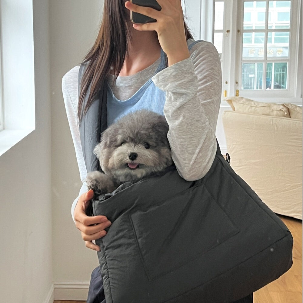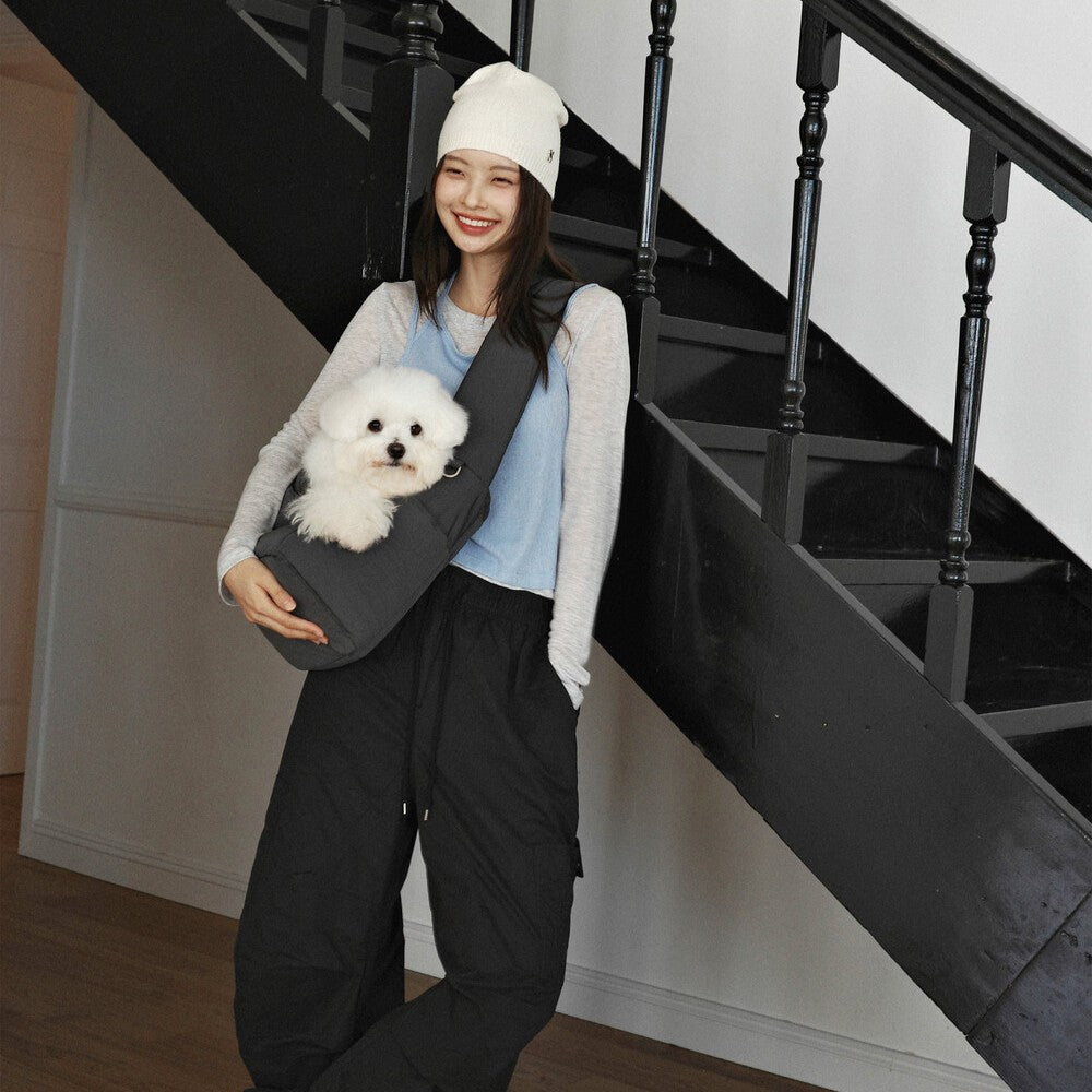 愛犬がやさしく包み込まれるように設計されたクッションタイプのスリングバッグは、飼い主と愛犬がしっかり密着できる構造で、柔らかさとフィット感を重視しています。