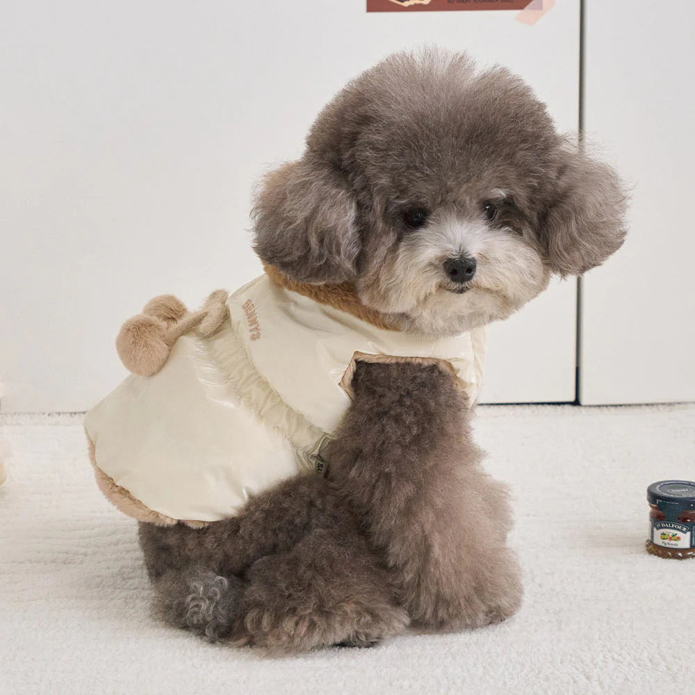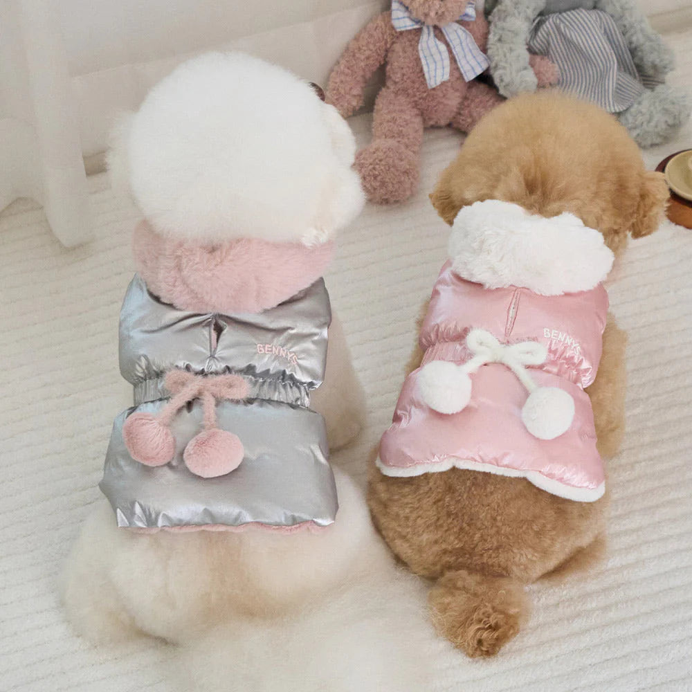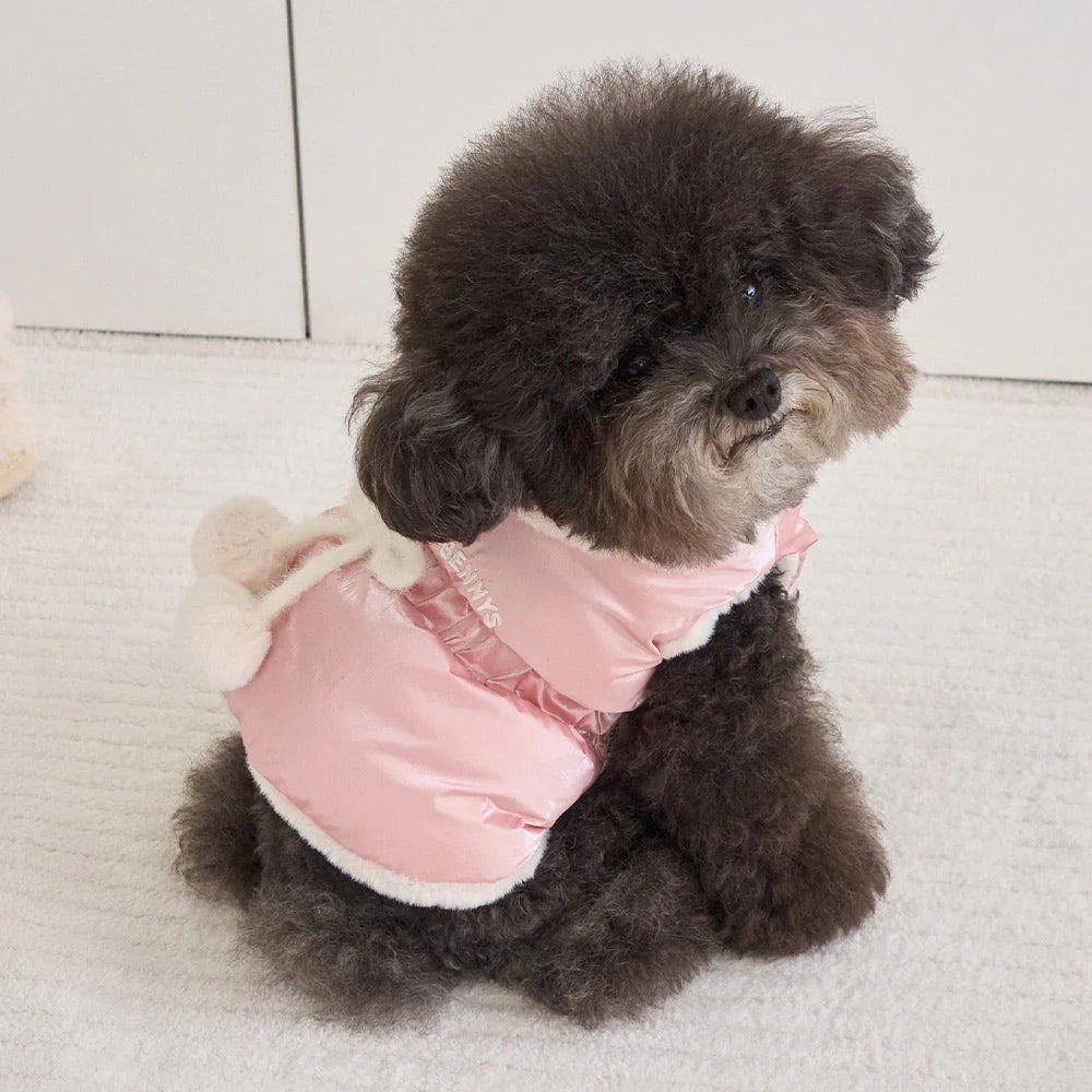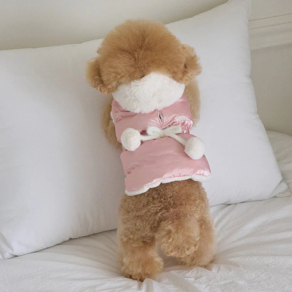 キュートなポンポンリボンディティールでおしゃれさを加えた、ムードたっぷりなダウンです。