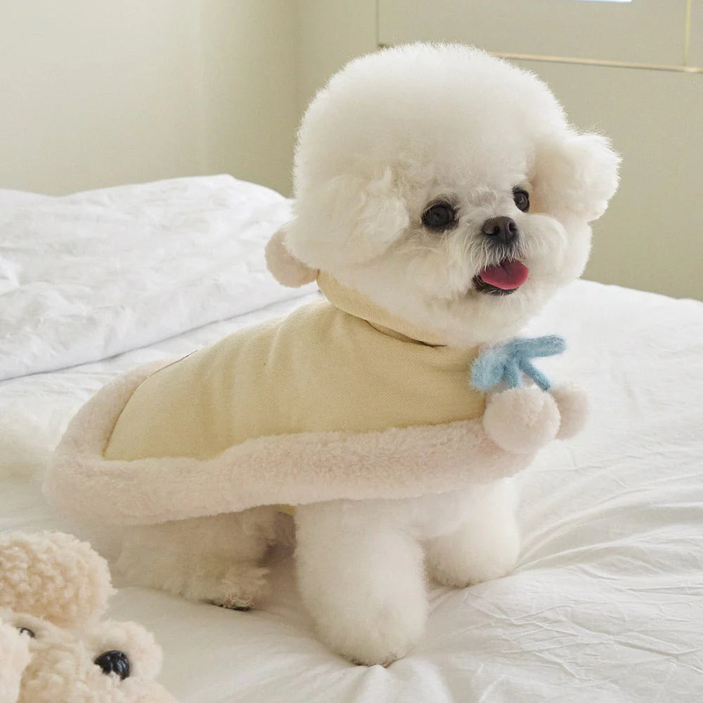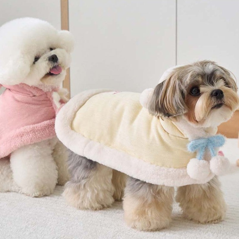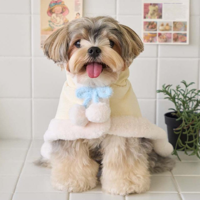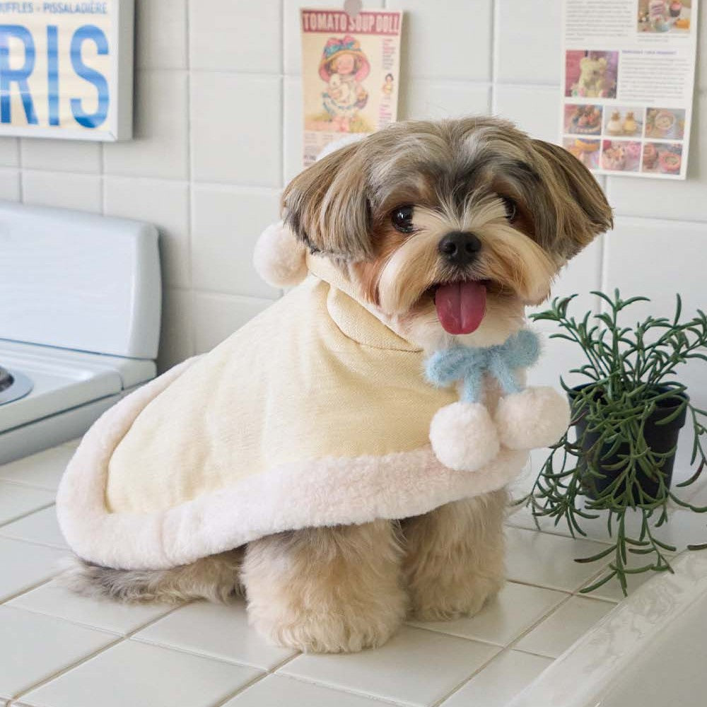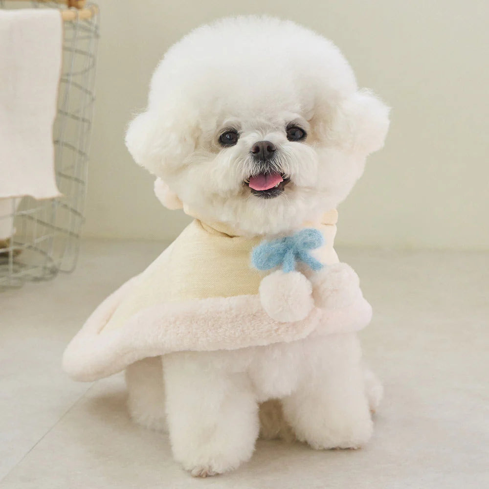 マシュマロのようなパステルトーンカラーで、ポンポンリボンが付いた可愛らしいケープ!