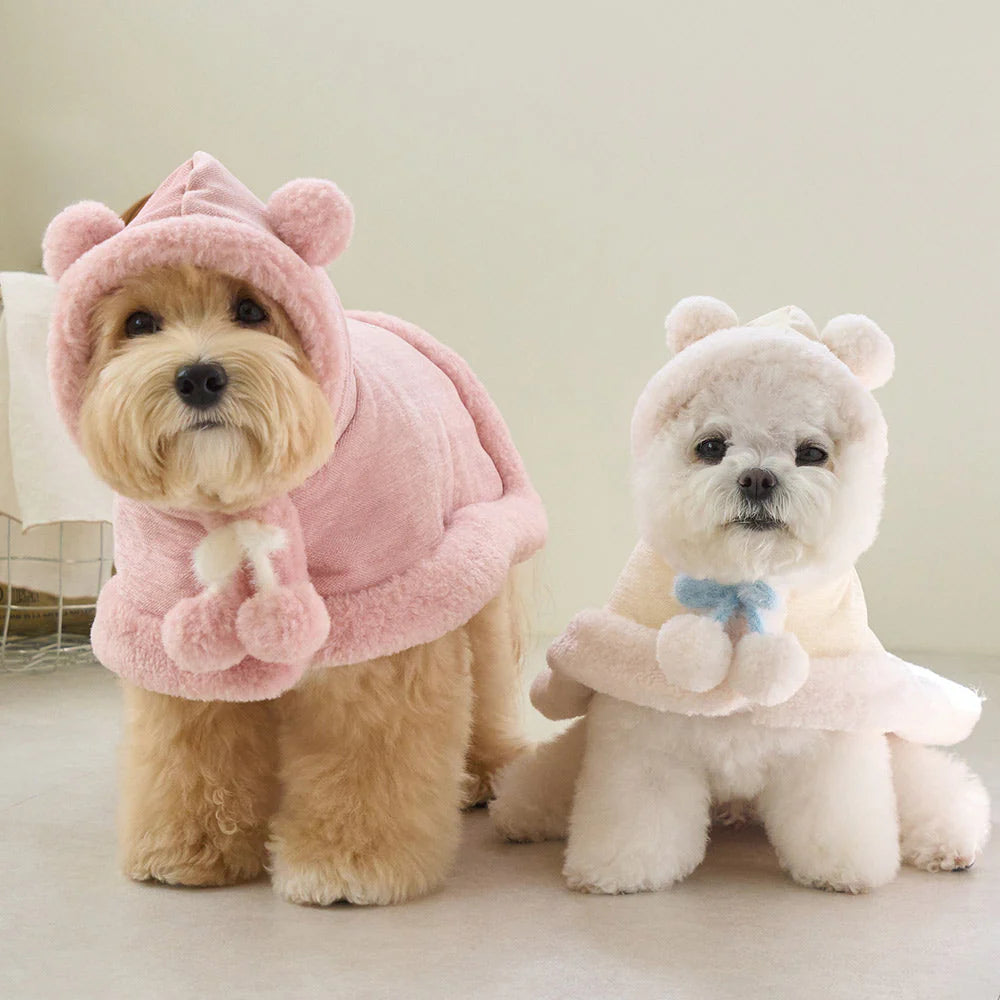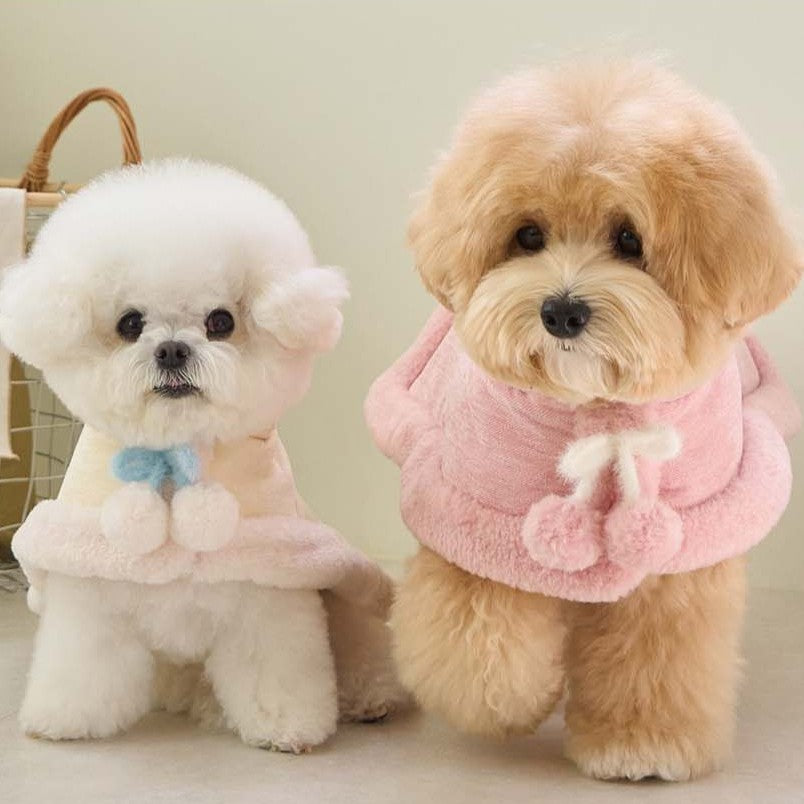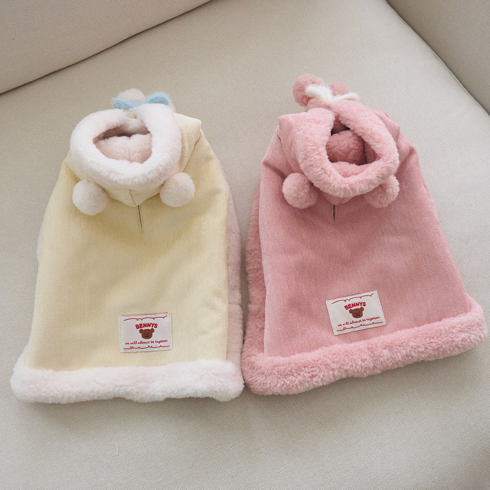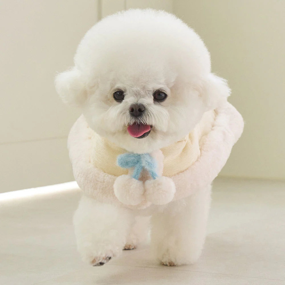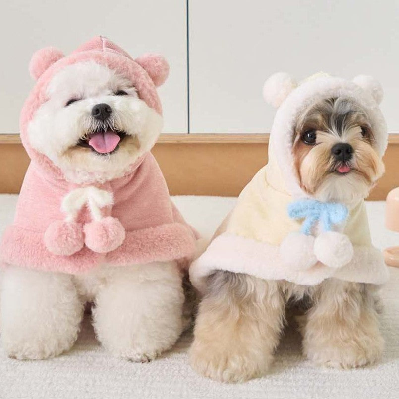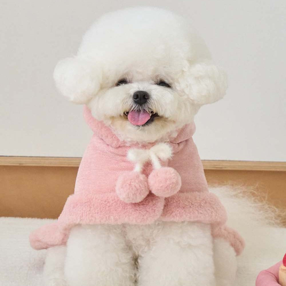 マシュマロのようなパステルトーンカラーで、ポンポンリボンが付いた可愛らしいケープ!