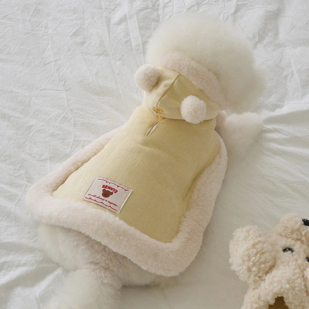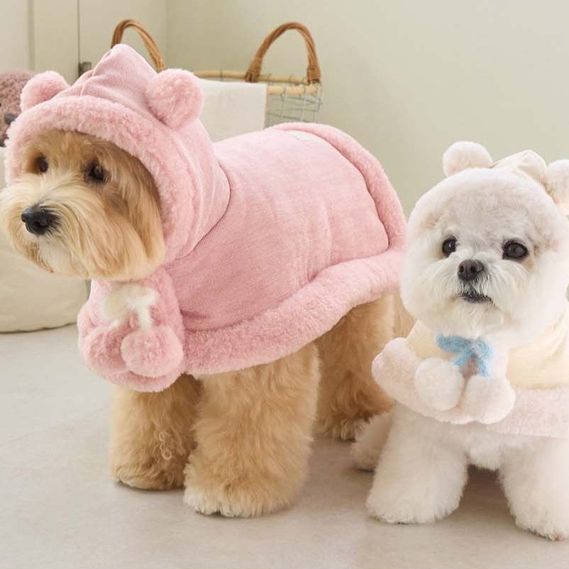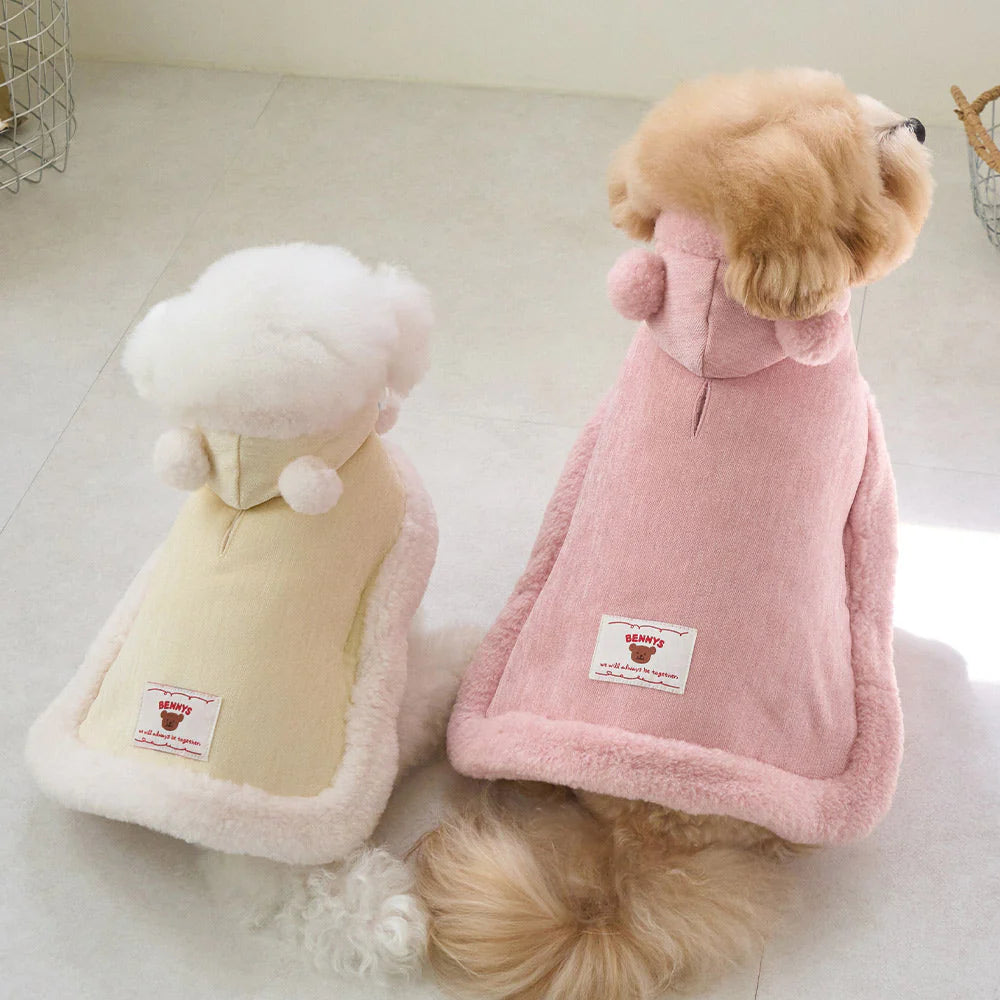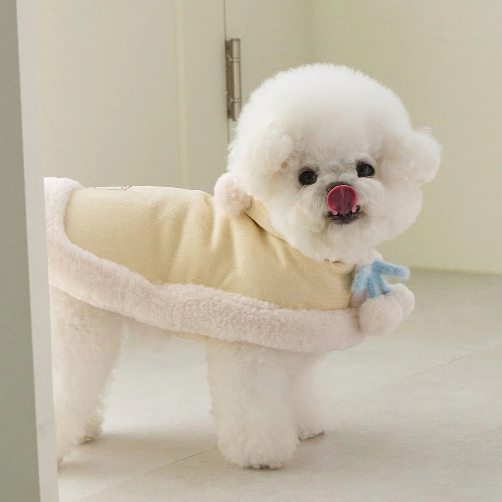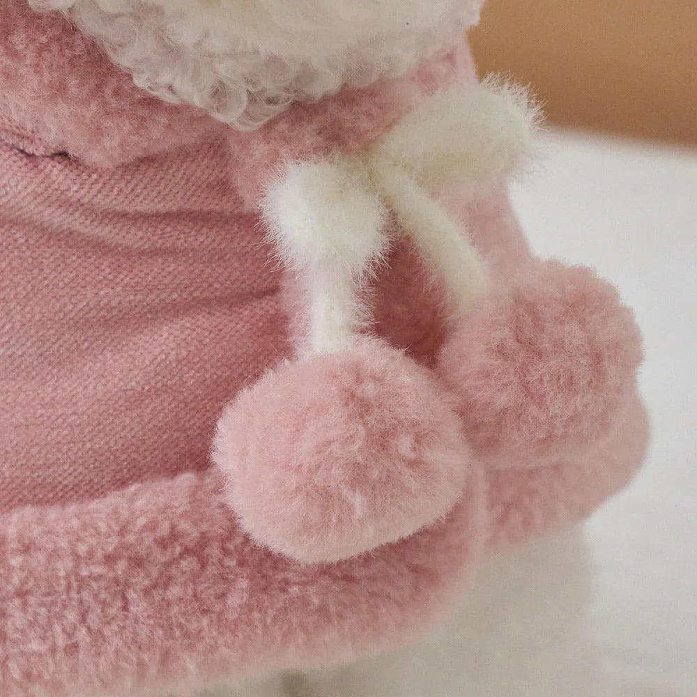 マシュマロのようなパステルトーンカラーで、ポンポンリボンが付いた可愛らしいケープ!
