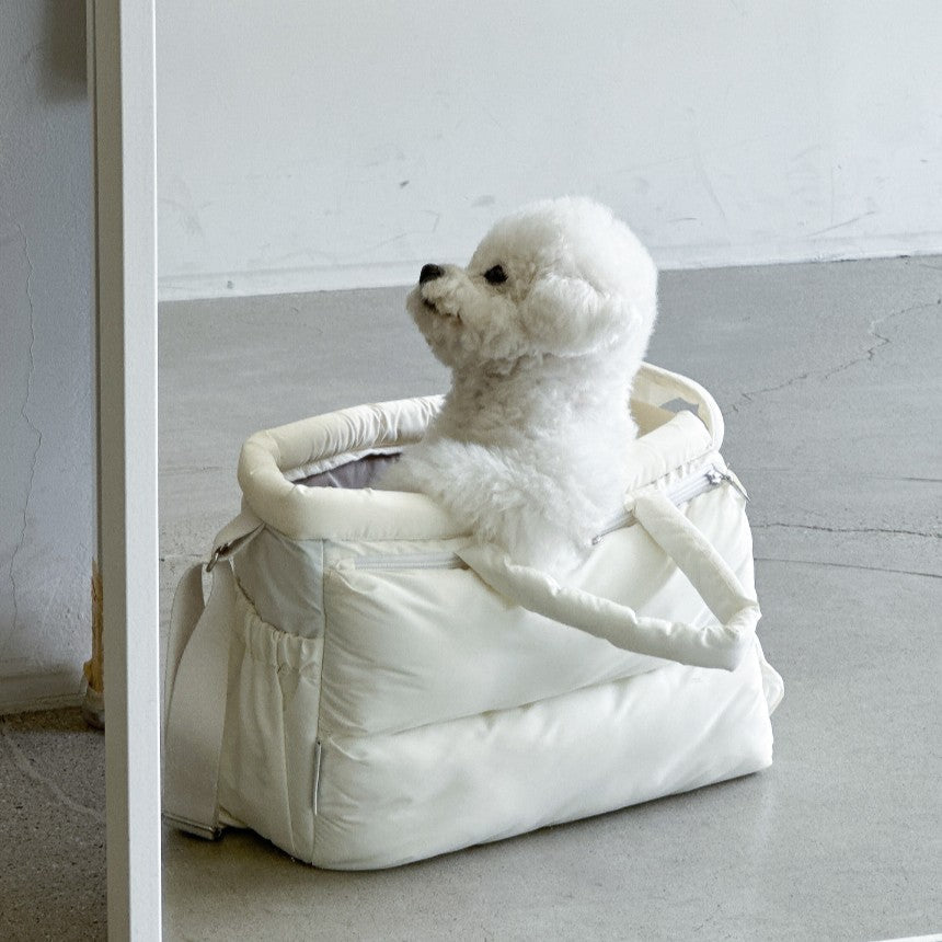 立体的なクッション性を備えたシンプルなデザインに、飼い主と愛犬の快適さを考えた細やかなディテールをすべて詰め込んだスリングバッグ「Mou Slingbag」。