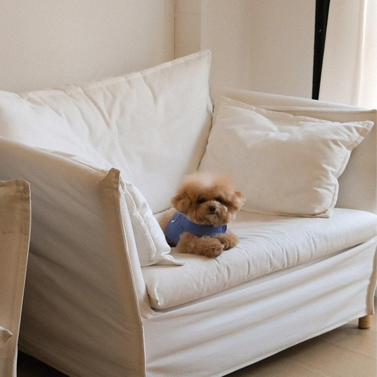 コットン生地を使用し、自然なテクスチャーと柔らかな色味が魅力のハーネスです。 太めの糸でしっかりと縫製されており、丈夫で長くお使いいただけます。