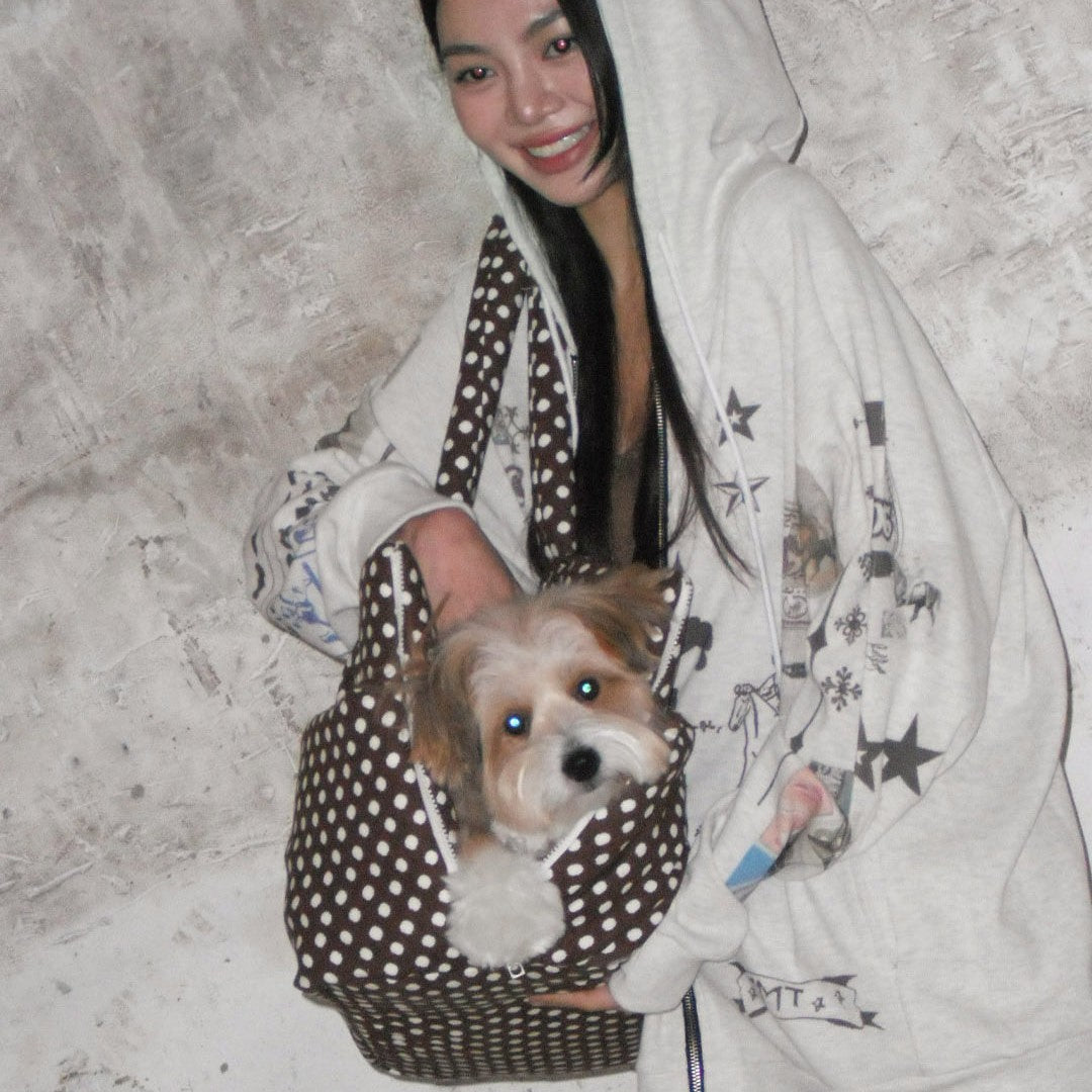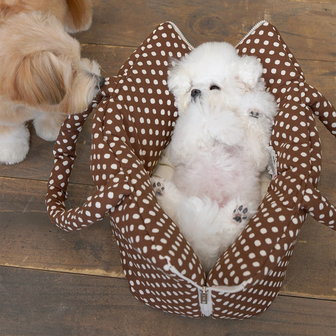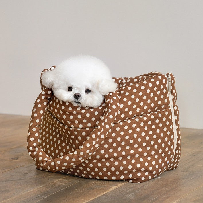 ファスナーで広がる拡張タイプのクッション型ペットキャリーバッグです。 軽くて肩への負担も少なく、前後に付いた4つの大きなポケットで収納力も抜群!