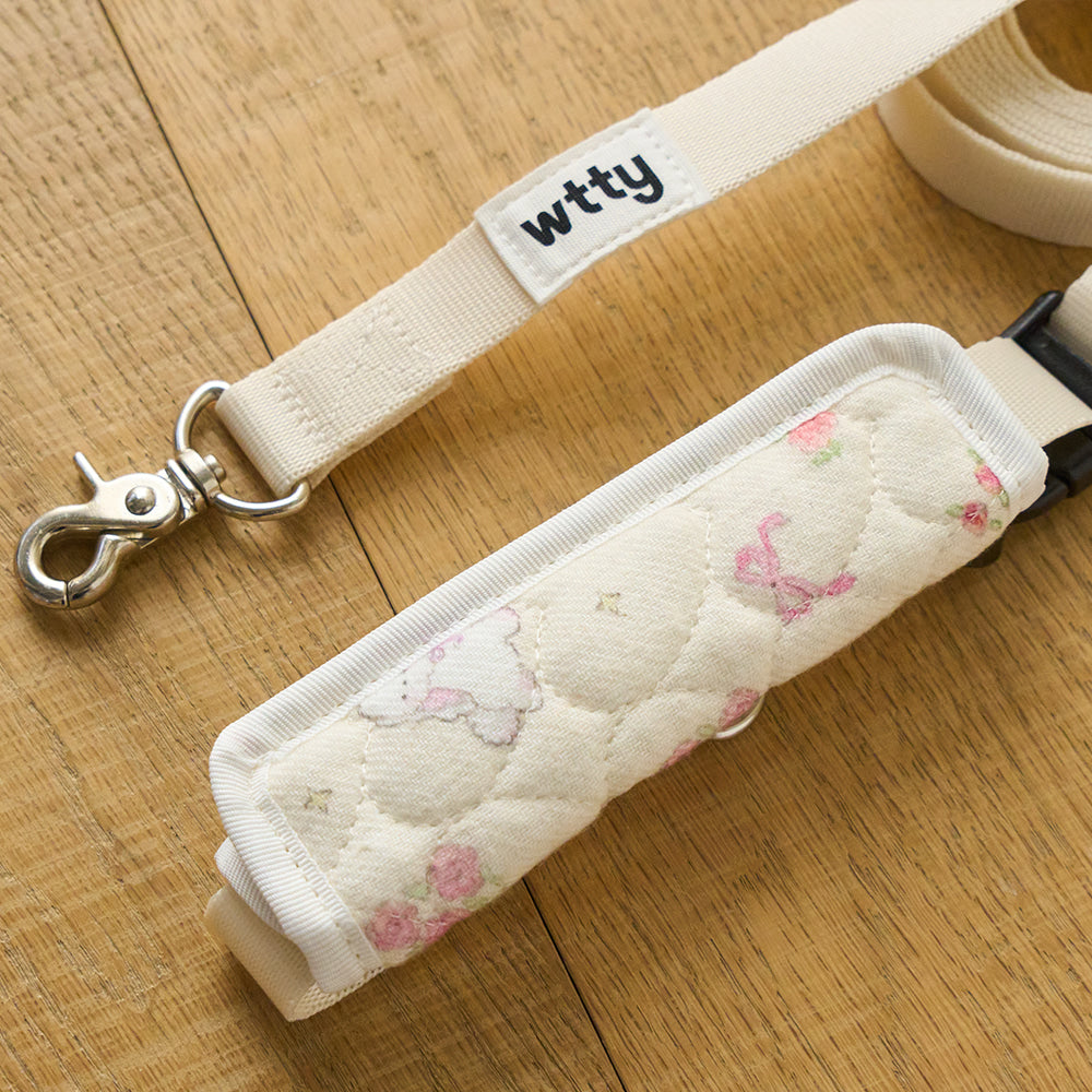 ハンズフリーリードとして、肩掛け(クロス)や腰に装着してご使用いただけます。 持ち手は取り外し可能で、ふんわりとしたキルティング仕様のため手にやさしくフィットし、お散歩の時間をより快適に楽しめます。